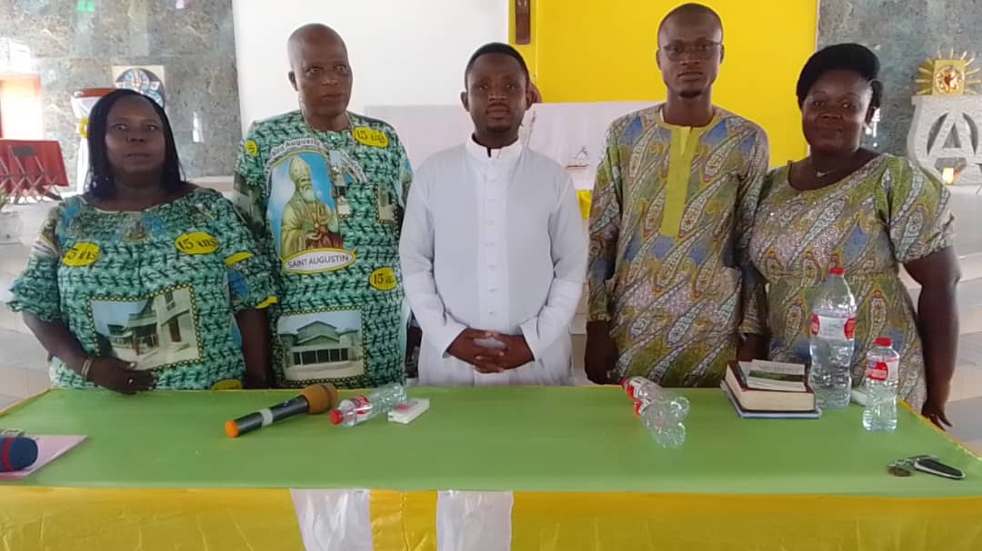 Les convertis à la nouvelle religion, furent Paul GBEHOUEZOUN, Pierre KOUAZON et Jules KPADONOU. Houssou KPOKPO d’AGBATO fut celui par qui le Seigneur est passé pour leur retour au bercail divin. Avec le dynamisme remarquable des chrétiens de Minontchou, l’urgence de construire une chapelle s’est rapidement fait sentir. En 1925, fut construite cette chapelle. Sons architecture de paillote, avec sa toiture en branches de bambou, indique bien son caractère provisoire. Quatre ans plus tard, le 25 décembre 1929, le Révérend père KOUAKOUVI célébra la première messe dans cette chapelle qui a porté le nom de Sacré-Cœur de Minontchou. A la faveur d’un incendie qui s’est produit le 24 décembre 1955, une nouvelle chapelle fut érigée un an plus tard sur les ruines de l’ancienne, sous l’autorité du révérend père Denys BELLUT. Peu après la jeune communauté de Minontchou, fut placée sous la tutelle de la Société des Missions Africaines (S.M.A). En 1958 elle fut rattachée à la paroisse Sacré-Cœur d’Akpakpa. En 1980, la station de Minontchou fut détachée de la paroisse Sacré-Cœur et rattachée à une paroisse nouvellement créée : la paroisse Saint Martin de Suru-Léré. Plus tard, précisément le 05 décembre 1999, cette nouvelle station de Saint Martin va changer de nom, pour laisser prioritairement la place à la paroisse Sacré-Cœur d’Akpakpa. Elle fut rebaptisée « Mission Catholique de Minontchou » dès cette date. Le 04 Août 2008, grâce à son excellence Mgr Marcel AGBOTON, elle acquiert son érection en paroisse et a pour station la communauté Saint Mathieu de KPONDEHOU. Son premier curé est Maurille APOVO. Depuis le 08 septembre 2013, le père Philippe YEYE a succédé à ce dernier. C’est avec lui que la paroisse Saint Augustin de Minontchou a célébrée ces noces d’Etain.